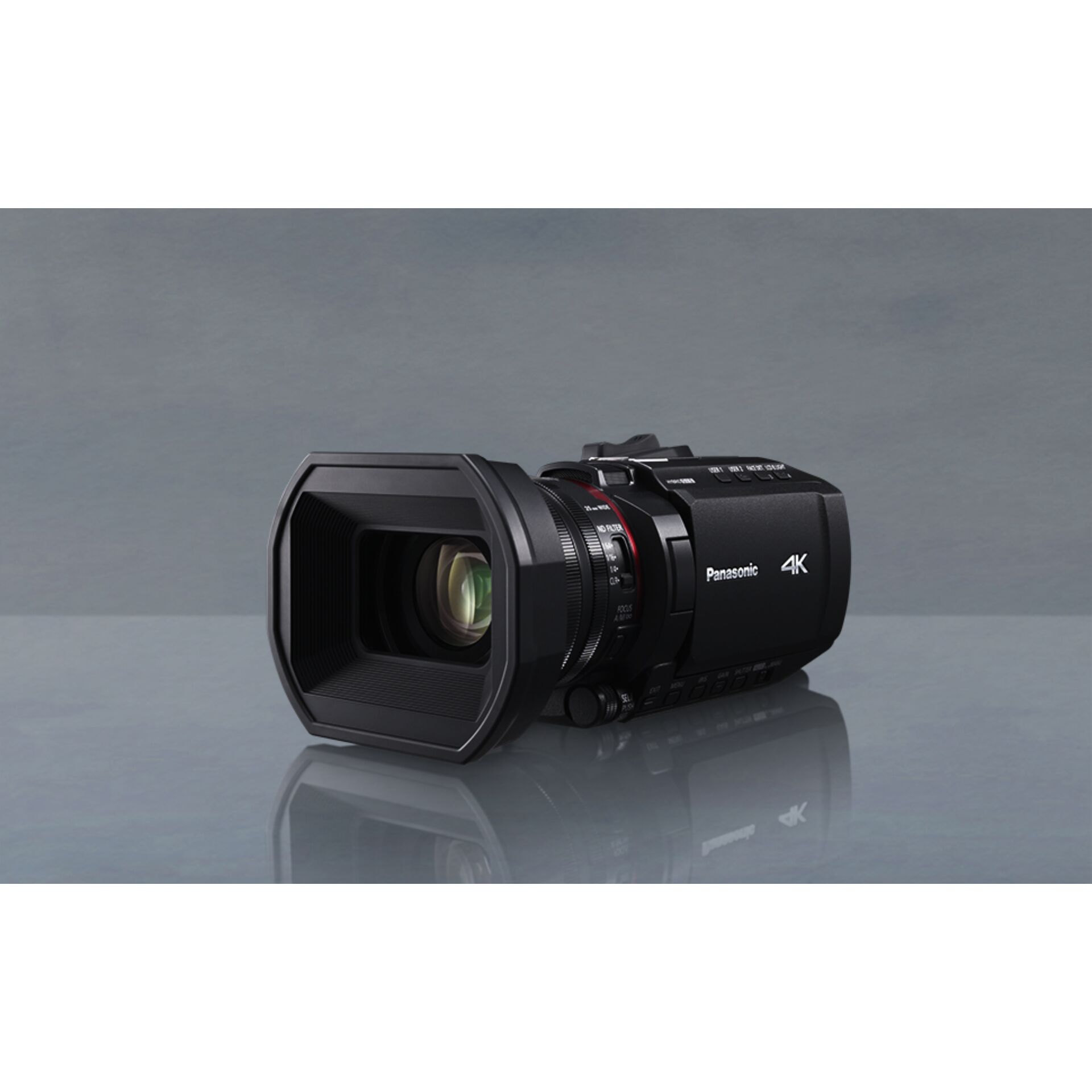La Panasonic HC-X1200E es una videocámara 4K compacta y ligera, diseñada para videógrafos profesionales que buscan alto rendimiento y movilidad. Equipada con un sensor MOS de 1/2,5″ y 8,29 MP, captura imágenes en 4K 60p 4:2:0 10 bits y en Full HD hasta 120 fps para obtener cámara lenta fluida. Su objetivo gran angular de 25 mm ofrece un zoom óptico de 24x (equiv. 25–600 mm) y control manual intuitivo gracias a sus dos anillos dedicados al zoom, al enfoque o a la apertura. Con su triple filtro ND integrado, estabilizador híbrido de 5 ejes y herramientas profesionales (waveform, vectorscope, zebra, etc.), la HC-X1200E garantiza una precisión de imagen excepcional en cualquier condición. Su doble ranura SD, completa conectividad HDMI y micrófono, así como su pantalla táctil de 3,5″ de alta definición (2,76 MP), la convierten en una herramienta versátil para reportajes, eventos o producciones corporativas exigentes.Características principalesSensor:MOS de 1/2,5″ con 8,29 MP efectivosResolución de video:4K 60p 10 bits / Full HD 120p para cámara lenta fluidaObjetivo:25–600 mm (equiv. 35 mm), apertura F1.8–4.0Zoom:Óptico 24x / i.Zoom 48x / Digital 10xEstabilización:Ball O.I.S. + HYBRID de 5 ejesFiltros ND:1/4, 1/16, 1/64 integradosRendimiento y grabaciónFormatos de grabación:MP4 (HEVC/H.265, H.264), AVCHDCódec de audio:AAC / Dolby Audio (48 kHz, 16 bits)Tasa de bits de video:hasta 100 Mb/s en 4K HEVC LongGOPModos de cámara lenta:FHD 100/120 fps para un aspecto cinematográficoDoble ranura SD:grabación en relevo, simultánea o en segundo planoFunciones profesionalesHerramientas de asistencia:Waveform, Vectorscope, Zebra, Nivel, Corrección Flash BandAjustes de imagen:8 gammas, LUTs, Master Detail, Color Correction, Chroma LevelBalance de blancos:Automático / Manual / Variable (2000–15000 K)Grabación infrarroja:Sí, con filtro IR ON/OFFPantalla, conectividad y ergonomíaPantalla LCD:3,5″ (8,8 cm) táctil, 2,76 MPVisor electrónico:0,39″, 1,77 MPEntradas/Salidas:HDMI Tipo A, micrófono 3,5 mm, auriculares, USB-CControl manual:doble anillo Zoom/Enfoque/AperturaAccesorios:zapata portaaccesorios y control remoto opcionalEspecificaciones generalesAlimentación:batería de ion de litio 7,28 V (5900 mAh) o adaptador de corriente 9 VConsumo:12,3 W en grabaciónDimensiones:129 × 93 × 209 mmPeso:1,1 kg (con batería y tarjeta SD)Contenido de la cajaVideocámara Panasonic HC-X1200E (negra)Batería de ion de litio 5900 mAhParasol