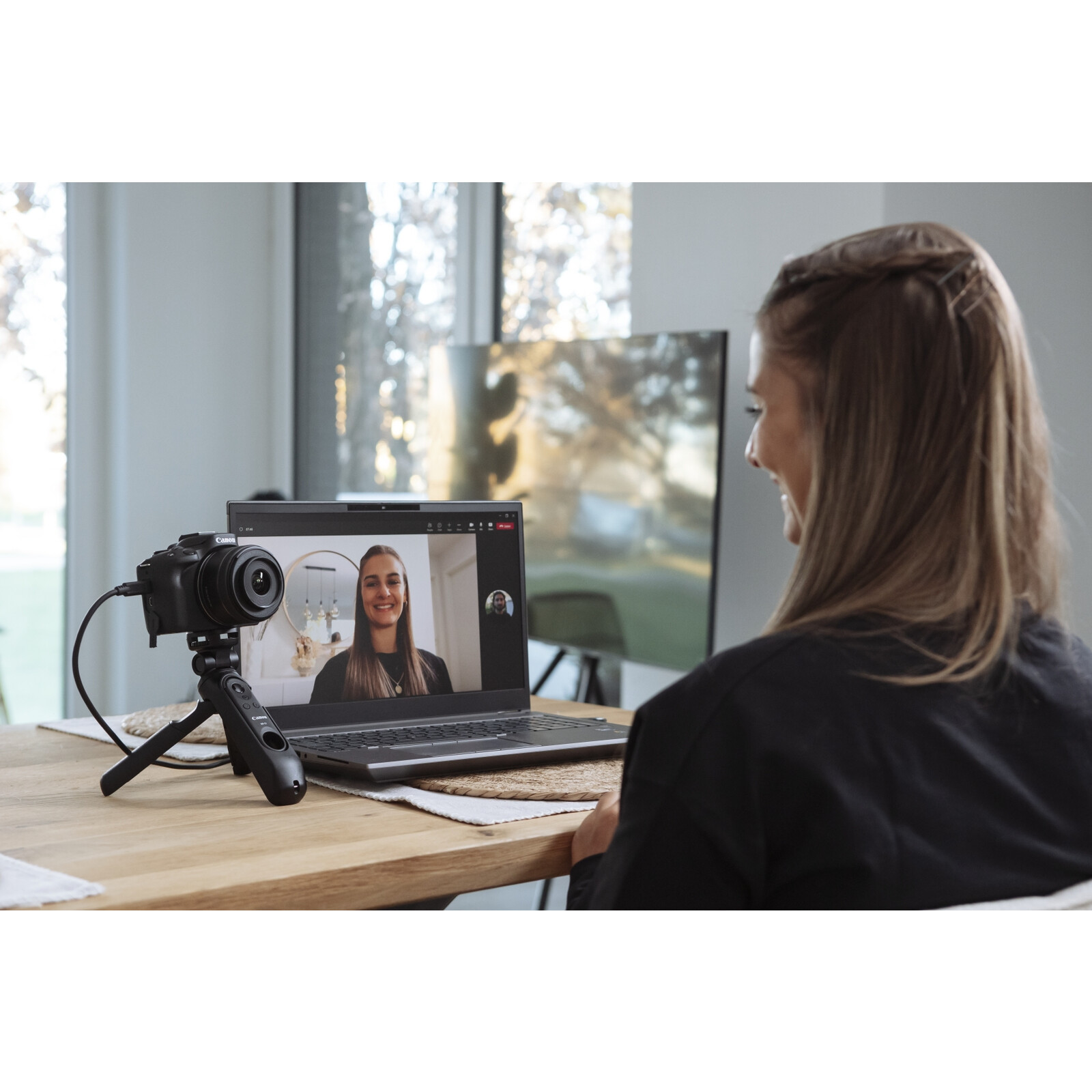 Expresa todo tu potencial creativo con laCanon EOS R50, la cámara híbrida APS-C diseñada para los creadores modernos.Ligera, compacta y fácil de usar, ofrece una calidad de imagen profesional gracias a su sensor de 24,2 MPy a su procesador DIGIC X de alto rendimiento.Graba vídeos 4K UHD nítidos y fluidos, captura retratos luminosos y comparte tus contenidos al instantemediante Wi-Fi o Bluetooth.Con su enfoque automático inteligente que sigue a personas, animales y vehículos, no volverás a perder ningún momento importante.EsteCreator Kitincluye el objetivo RF-S 18-45mm, un micrófono estéreo y un grip trípode para lanzarte alvlogging y a las redes sociales con total confianza.¡Ideal para viajar, crear y compartir sin límites!Características principalesSensor APS-C CMOS de 24,2 MP con procesador DIGIC XVídeo 4K UHD 30p (sobremuestreo 6K), Full HD 120pEnfoque automático Dual Pixel CMOS AF II con seguimiento inteligentePantalla táctil abatible de 3” + visor OLED de 2,36 M puntosConexión sencilla mediante Wi-Fi y BluetoothObjetivo RF-S 18-45mm IS STMZoom estándar 18–45 mm (equiv. 29–72 mm)Estabilización óptica eficaz (hasta 4 pasos)Motor STM silencioso, ideal para vídeoFormato compacto y ligero, fácil de transportarAccesorios incluidos (Creator Kit)Micrófono estéreo Canon DM-E100 con paravientosGrip trípode Canon HG-100TBR con mando a distanciaTarjeta de memoria 32 GBContenido de la cajaCanon EOS R50 (cuerpo negro)Objetivo RF-S 18-45mm F4.5-6.3 IS STMMicrófono estéreo Canon DM-E100 + accesoriosGrip trípode Canon HG-100TBRBatería LP-E17 + cargador LC-E17ECorrea EM-200DBTapas de cuerpo y objetivoTarjeta de memoria 32 GBDocumentación y cables