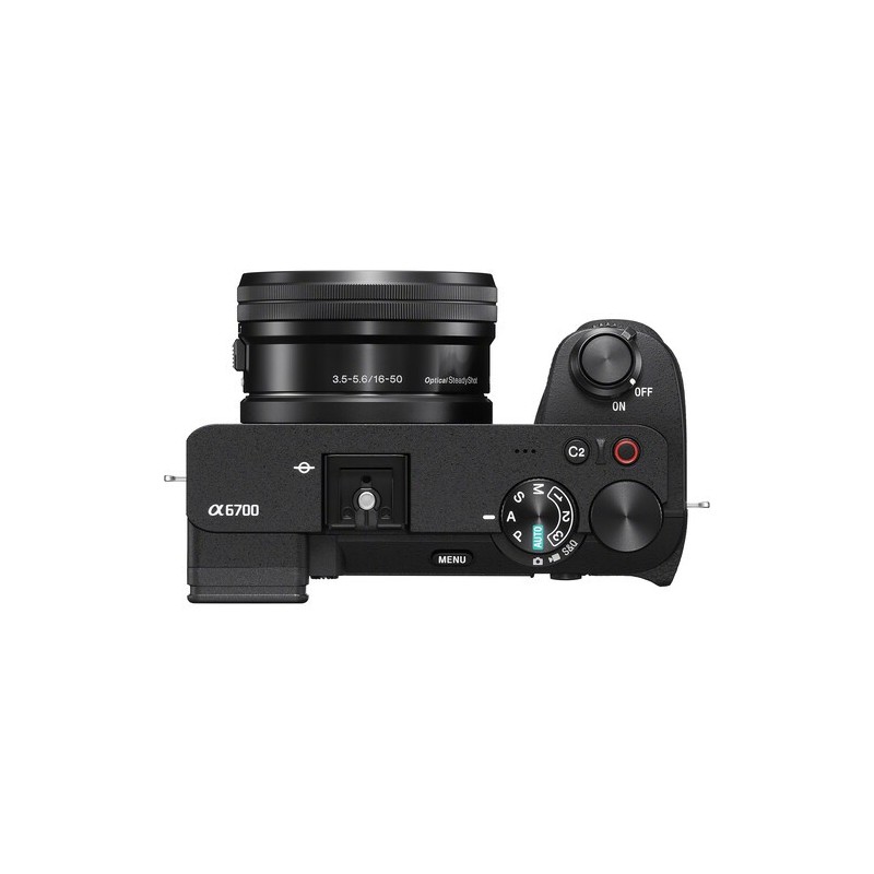 Elpack Sony Alpha 6700 + objetivo 16-50 mm f/3,5-5,6 PZ OSScombina la potencia de un cuerpo mirrorless APS-C de nueva generacióncon la versatilidad de un zoom compacto estabilizado. La Alpha 6700, con su sensor Exmor R de 26 MP y autofocus con IA,garantiza una precisión excepcional tanto en fotografía como en vídeo 4K. El objetivo 16-50 mm ofrece compacidad, zoom motorizado y estabilización óptica,ideal para fotografía de viajes, uso diario y creación de contenido audiovisual.Características principales:Sensor Exmor R APS-C de 26 MPcon procesador BionZ XRAutofocus con IAcon seguimiento en tiempo real (personas, animales, vehículos)Vídeo 4K UHDcon sobremuestreo 6K, hasta 120 fps, 10-bit 4:2:2Estabilización de 5 ejesintegrada (hasta 5 stops)Ráfaga de 11 fpse ISO 100–32 000 (extensible hasta 102 400)Pantalla táctil orientabley visor OLED de 2,36 M puntosConectividad completa: USB-C 3.2, micro HDMI, Wi-Fi, Bluetooth, NFCObjetivo Sony 16-50 mm PZ OSS: zoom motorizado, estabilización óptica, diseño ultracompacto (116 g)Bokeh suave gracias a unaapertura f/3,5–5,6y 7 láminas redondeadasDimensiones del cuerpo: 122 × 69 × 75 mm – Peso: 493 g (con batería)Contenido de la cajaCuerpo Sony Alpha 6700 (negro)Batería recargable Sony NP-FZ100Tapa del cuerpoTapa del ocularCorrea de transporteTapa de la zapata para accesoriosObjetivo Sony 16-50 mm f/3,5-5,6 PZ OSS E-MountTapa frontal del objetivoTapa trasera del objetivoManual de usuario