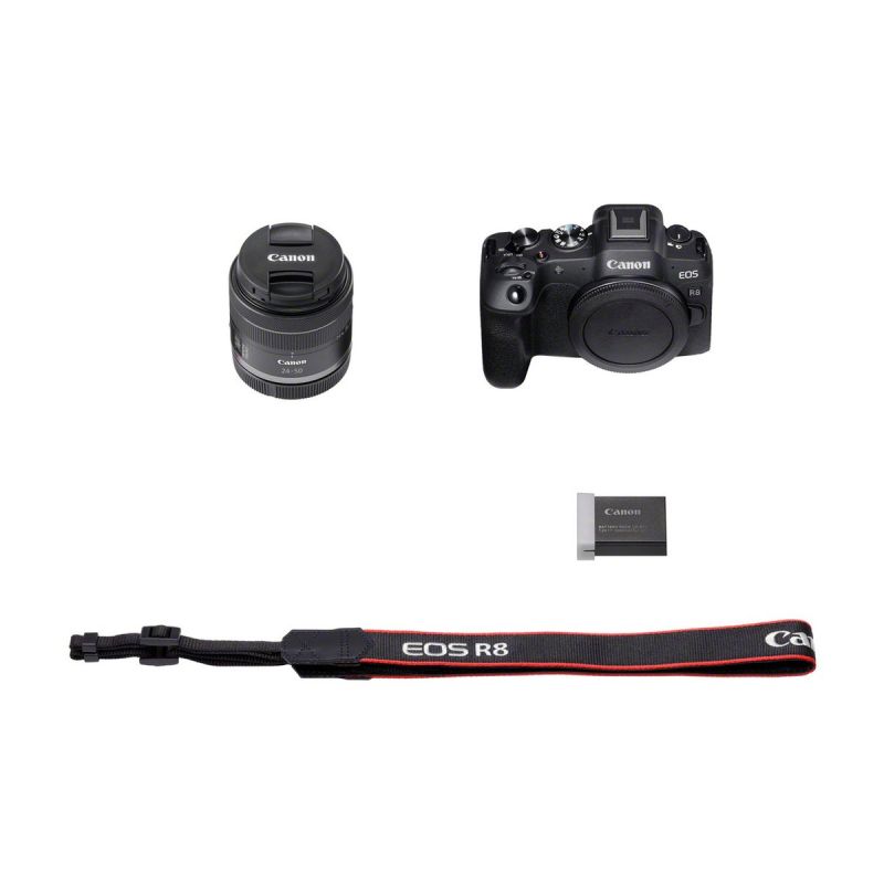 LaCanon EOS R8es unacámara híbrida de fotograma completo, ligera y potente, pensada para fotógrafos y videógrafos exigentes. Susensor CMOS de fotograma completo de 24,2 MPcaptura imágenes ricas en detalles con un magnífico efecto bokeh natural y un excelente rendimiento con poca luz.En video, graba en4K 60p sobremuestreado desde 6Kcon Canon Log 3 para un acabado cinematográfico y gran flexibilidad en la postproducción. ElDual Pixel CMOS AF IIasegura un autoenfoque ultrarrápido e inteligente con detección de ojos, animales y vehículos, incluso con poca luz (-6,5 EV).Ligera (461 g) y compacta, la Canon EOS R8 es ideal para viajes, eventos, retratos o creación de contenido. El conjunto incluye el objetivoCanon RF 24-50mm f/4,5-6,3 IS STM, un zoom versátil con estabilización óptica de 4,5 pasos (hasta 7 pasos con IBIS), perfecto para fotos nítidas y vídeos fluidos en el día a día.Características principalesSensor:CMOS de fotograma completo de 24,2 MPVídeo:4K 60p (sobremuestreo 6K), Full HD 180p, Canon Log 3Autoenfoque:Dual Pixel CMOS AF II con detección de sujetos/ojos/animales/vehículosRáfaga:hasta 40 fps electrónicaPantalla:táctil orientable y visor electrónico de 2,36 MptsISO:100–102.400 (ext. 204.800)Conectividad:Wi-Fi, Bluetooth, USB-C, función de cámara webObjetivo incluido:Canon RF 24-50mm f/4,5-6,3 IS STM con estabilización ópticaContenido de la cajaCuerpo Canon EOS R8Objetivo Canon RF 24-50mm f/4,5-6,3 IS STMBatería LP-E17 con protecciónCargador LC-E17/LC-E17ECorrea CanonTapa trasera y frontal del objetivo (E-58 II)Manual de usuario