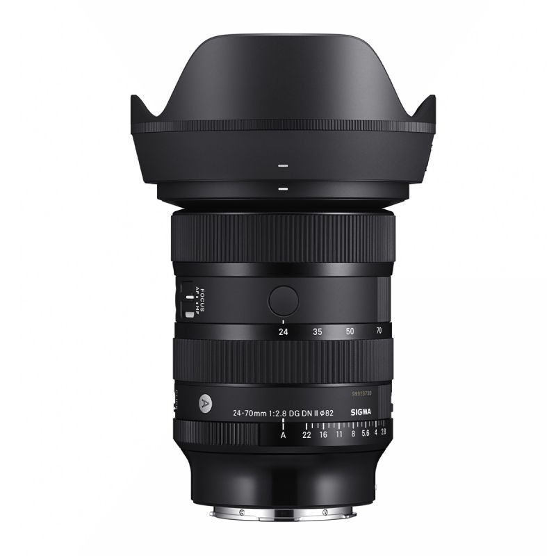 El Sigma 24-70 mm f/2,8 DG DN II Art E-Mount es un objetivo zoom estándar luminoso diseñado para cámaras sin espejo de fotograma completo Sony E-Mount. Con su gran apertura f/2,8 y su excelente calidad óptica, captura imágenes nítidas y fondos cremosos gracias al suave bokeh. Compacto y ligero, ofrece un rendimiento óptimo para fotógrafos profesionales y aficionados exigentes.Características principalesExcelente calidad óptica gracias a 6 elementos FLD y 2 SLD para minimizar las aberraciones5 lentes asféricas para reducir las distorsiones y un diseño compactoDistancia mínima de enfoque: 17 cm para magníficos macrosReducción de destellos y reflejos gracias al revestimiento Nano-Porous y Super-Multi-LayerConstrucción resistente al polvo y a las salpicadurasAnillo de diafragma con función «De-Click» para un control de video fluidoAutoenfoque rápido y preciso con motor HLA7 % más pequeño y 10 % más ligero que el modelo anteriorEspecificaciones técnicasMontura: Sony E-MountDistancia focal: 24-70 mmApertura: f/2,8Diámetro del filtro: 82 mmDistancia mínima de enfoque: 17 cm (gran angular) – 34 cm (teleobjetivo)Peso: aproximadamente 745 gConstrucción óptica: 19 lentes en 15 gruposApertura mínima: f/22Ángulo de visión: 84,1° – 34,3°Número de hojas del diafragma: 11 redondeadasRevestimiento: Nano-Porous y Super-Multi-LayerResistente al polvo y a las salpicadurasContenido del paqueteSigma 24-70 mm f/2,8 DG DN II Art E-MountParasol LH778-05Estuche de protecciónTapa frontal LCF-82 mm IIITapa trasera LCR II